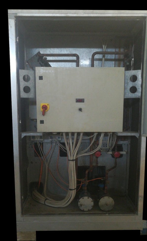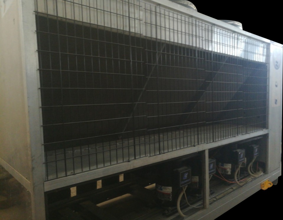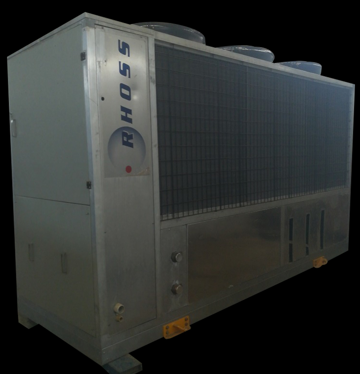 Air Cooled Water Chiller 40 Ton Rhoss Italy Air-Cooled Liquid Chiller Nominal Cooling Capacity: 136.4 kW (Capacity Based on Evaporator Water Inlet/Outlet Temperature 55/45 °F, External Air Temperature 95 °F) Make: Rhoss (Italy) Hermetic Scroll Compressors (04 Nos) Dual Refrigeration Circuits Refrigerant: R-407C Air-Cooled Condensers (Copper Tubes/Aluminum Fins) High and Low Refrigerant Pressure Switches Refrigerant Pressure Gauges Parametric Microprocessor Control Phase Monitor against Phase Loss and Phase Reversal Compressor Crankcase Heater Nominal Power Supply: 380~440V 3Ph 50Hz