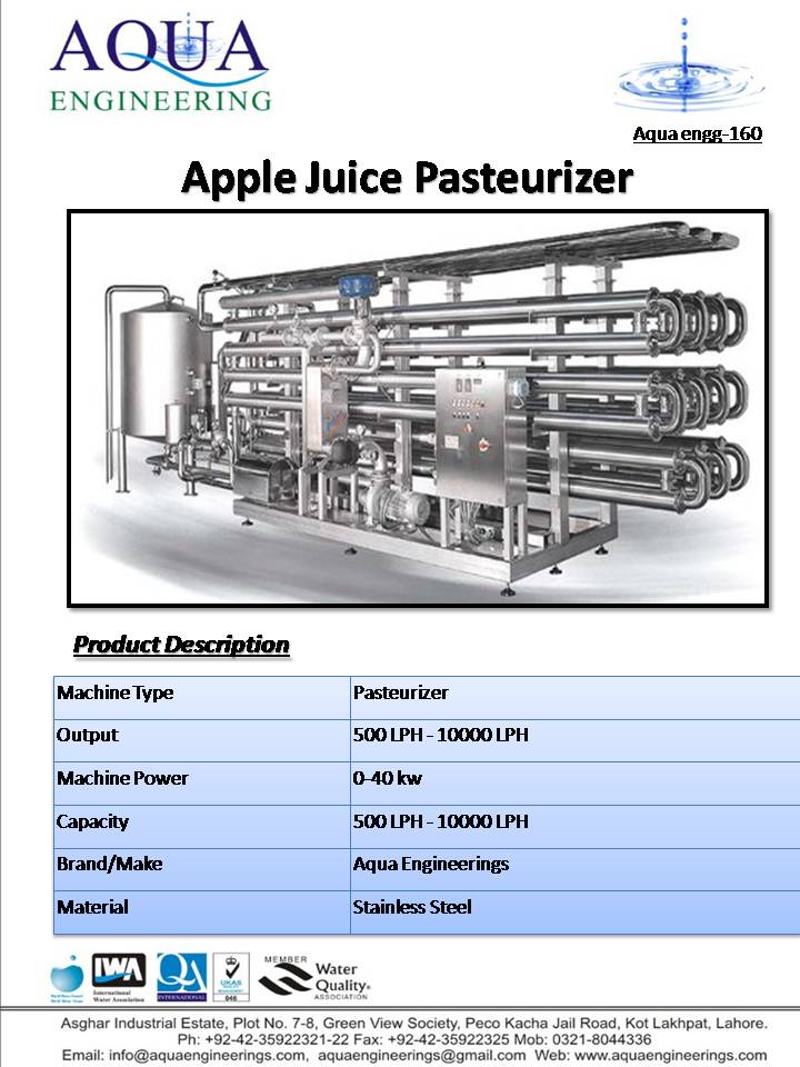 we are manufacturer of Apple Juice Pasteurizer we also All kind of machinery or plant which related with food and beverages using high quality material contact us for detail and Quotation