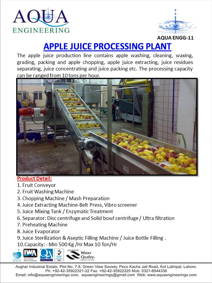 Apple Juice Processing Plant we are experts to make machinery or plant which related with food and beverages if you want to make so feel free to contact us