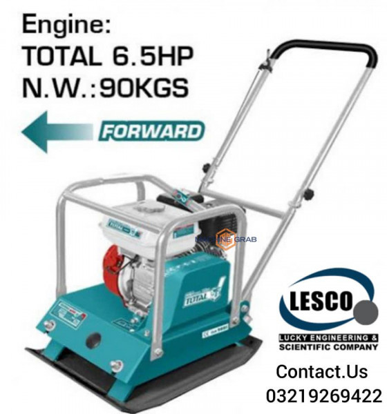 Gasoline plate compactor Model : TP7100-2 Petrol Engine Engine power:4.8Kw(6.5HP) Weight:90Kgs Frequency:4200VPM Centrifugal Force:15kN Compaction Depth:30cm Travel Speed:45cm/s Efficiency:660M2/Hr Plate size:50x45cm Packed by carton box