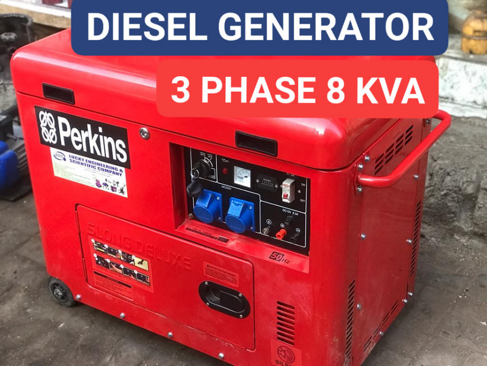 PEKINS (CHINA) Self Start Diesel Generator Capacity 8 Kva, 3 Phase, self Start , mounted on wheel & Soundproof Canopy..