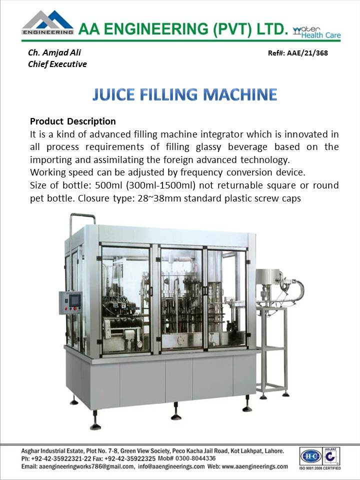 Filling Machine Use for: Water Filling Bottles Juice Filling Bottles