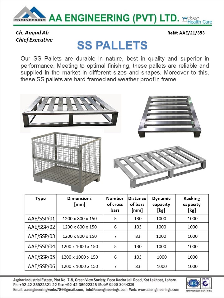 Our SS Pallets are durable in nature, best in quality and superior in performance. Meeting to optimal finishing, these pallets are reliable and supplied in the market in different sizes and shapes. Moreover to this, these SS pallets are hard framed and weather proof in frame.
