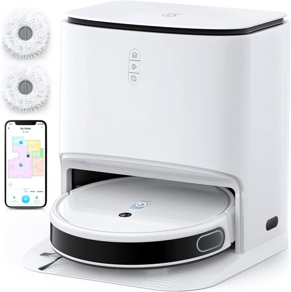 Yeedi mop Station pro Robot Vacuum with Authentic Mopping Pads 【Dual-Power Spin Mopping】Two mopping pads with 10N force to the floor cling to the ground and spin 180 times per minute to loosen and wipe off the most annoying stains with ease. 【Self-Cleans the Mopping Pads】The mops are always clean to perform. Two 3.5L water tanks store clean and wastewater separately to avoid cross-contamination. yeedi even dries the washed mops to avoid odor generation when clean completes. 【 Grab More, Empty Less】With vacuum and mop integration, yeedi boasts 3000Pa strong suction power to pick up any dirt on the floor, and a 750ml capacious swapping dustbin bigger than that of most robot vacuums on the market stores more dust for less emptying. 【Carpet Caring】 With an ultrasonic carpet sensor, yeedi recognizes your carpet and cleans it cleverly. In mopping mode, it steers away to avoid wetting it, while in vacuuming mode, it increases the suction to MAX for deep carpet cleaning. 【App & Voice Control】yeedi app lets you set cleaning sequence, schedule cleaning, set up a no-go zone, and more anywhere, anytime, and integration with Alexa and Google Home allows you to clean with your voice.
